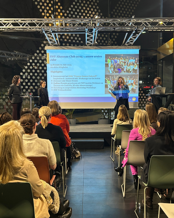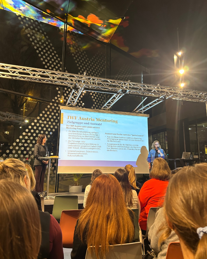 Inspirierende Einblicke in den Alumnae Club des IWF Austria gaben Evelyn Fischer und Johanna Urbanz. Ein herzliches Dankeschön gilt zudem der Vizepräsidentin Iris Brachmaier, die an diesem Abend von Vorständin Carina Leinfellner vertreten wurde, für die Gastfreundschaft sowie den Organisatorinnen des Mentoringprogramms für die gelungene Umsetzung.