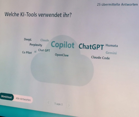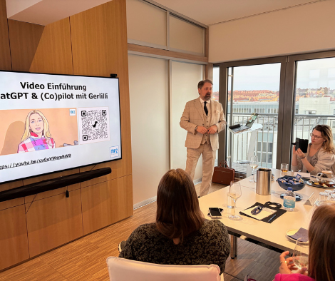 Die beiden erklärten KI und seine Möglichkeiten – auch sehr gut für Laien, befragten die teilnehmenden Mentees und Alumnae sowie IWF Mitglieder in Echtzeit per QR-Code und Handy, sodass die Ergebnisse gleich am Bildschirm der Präsentation zu sehen waren. Es wurden die neuesten Ansätze, wie KI-Agenten, die gerade im Entstehen sind, die selbst Aktionen am Computer ausführen können und Vibe Coding, das ist wenn KI selbst programmiert unter anderem Spannenden besprochen. Damit wurde auch thematisiert und diskutiert, dass Jobs wie zum Beispiel Junior-IT-Entwicklungsaufgaben in Zukunft wohl zunehmend obsolet werden.